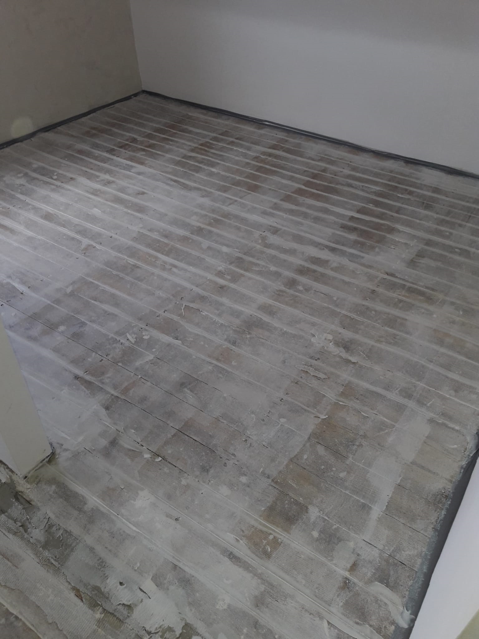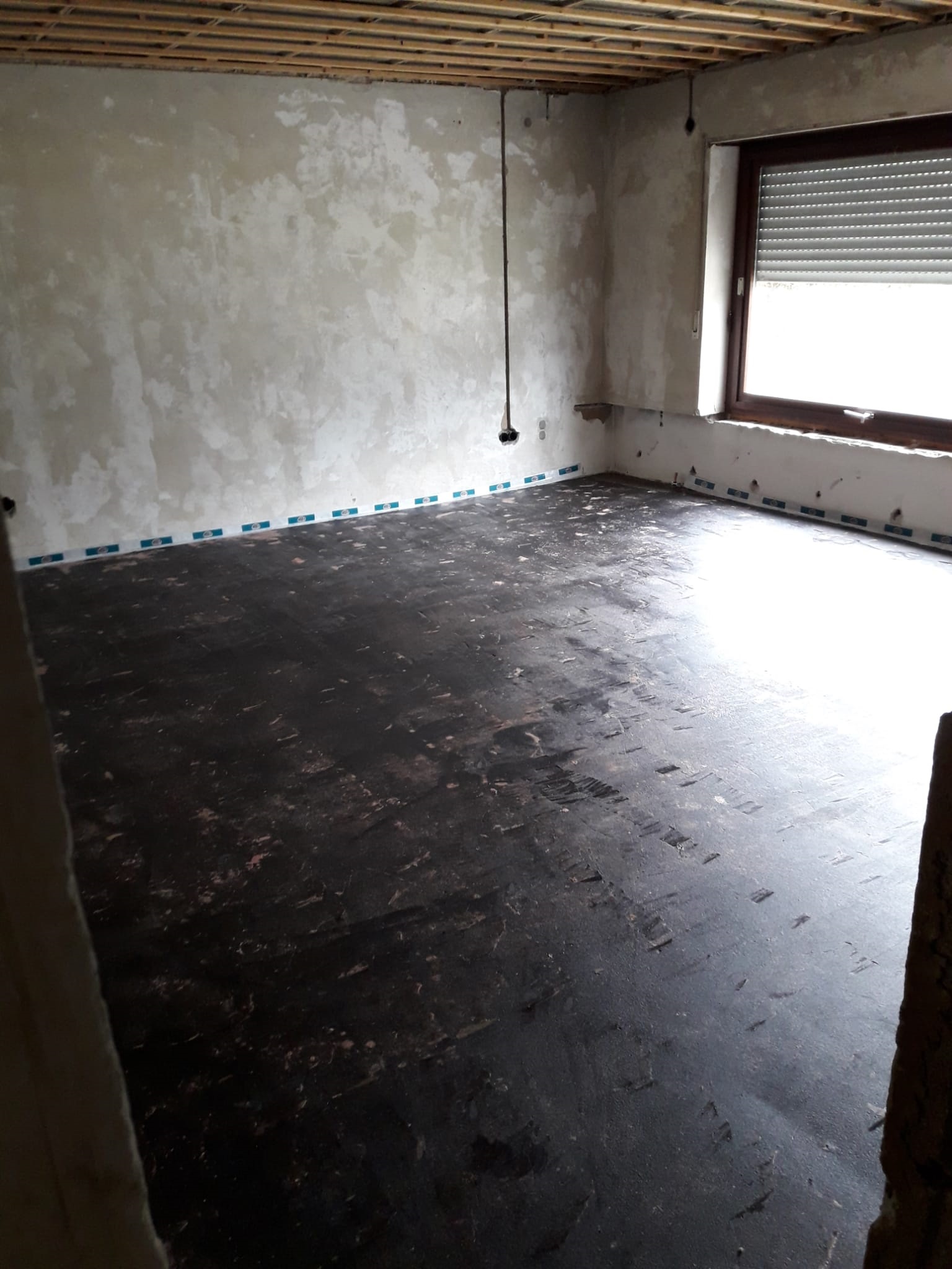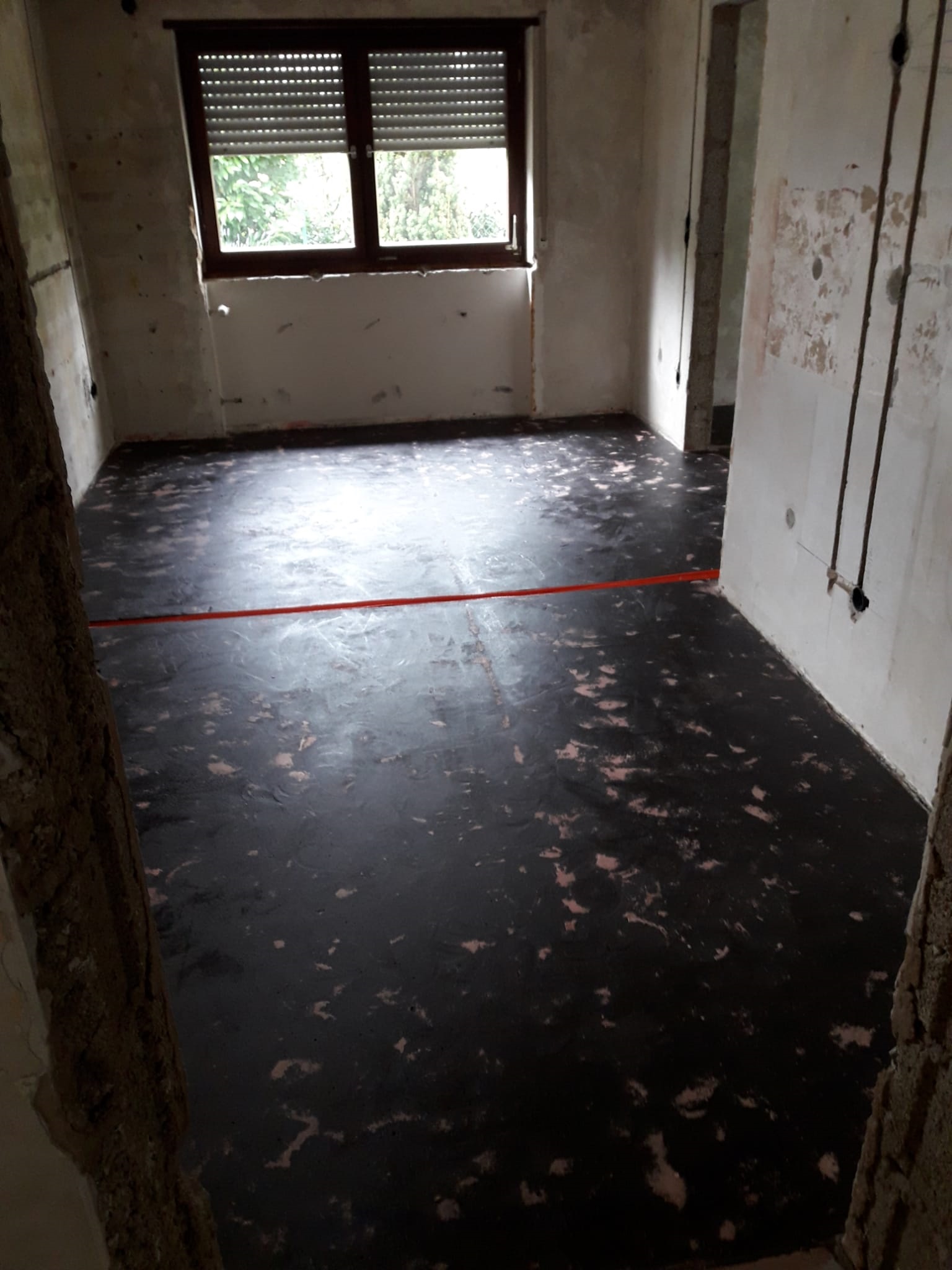 - Estrich nivellieren/ausgleichen, grundieren und vorbereiten